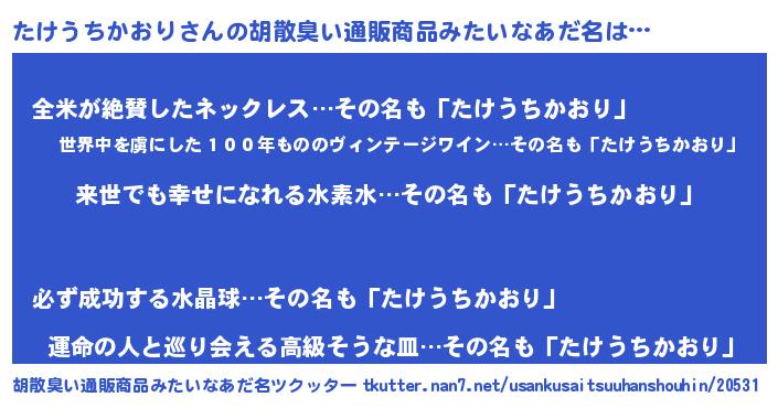 | 意味不明あだ名 | 『永久保存たけうちかおり』 |
