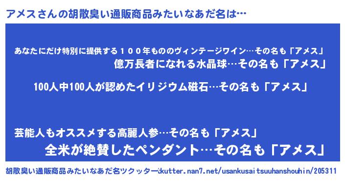 | ヒーロー風カッコイイあだ名 | 『友情の使者アメス』『仮面アメダー』 |