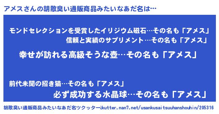 | 意味不明あだ名 | 『アメスフォーエバー』『ペロリンアメス』 |