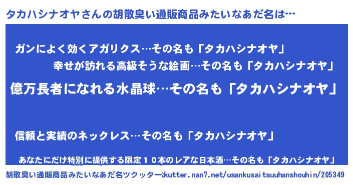 | 恥ずかしいあだ名 | 『プリティータカハシナオヤ』 |