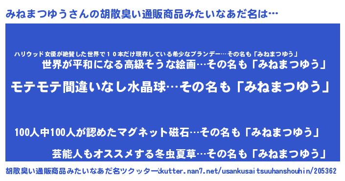 みねまつゆうさんの胡散臭い通販商品みたいなあだ名をツクッター!