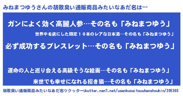 | 肩書あだ名 | 『みねまつゆうCEO』『みねまつゆう閣下』 |