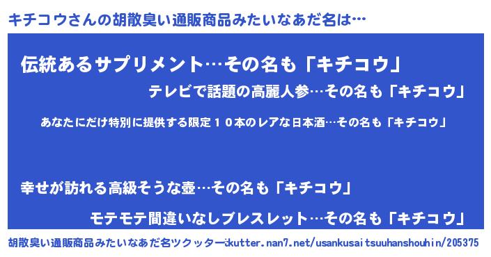 | ヘコむあだ名 | 『キチ太郎』『キチにー』『なまこ酢』 |