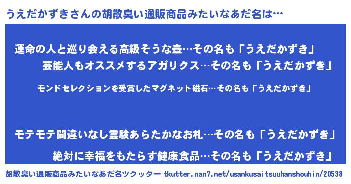 | 意味不明あだ名 | 『眠気覚ましガムうえだかずき味』 |