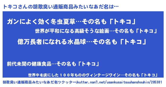 | 恥ずかしいあだ名 | 『プリティートキコ』『トキコデラックス』 |