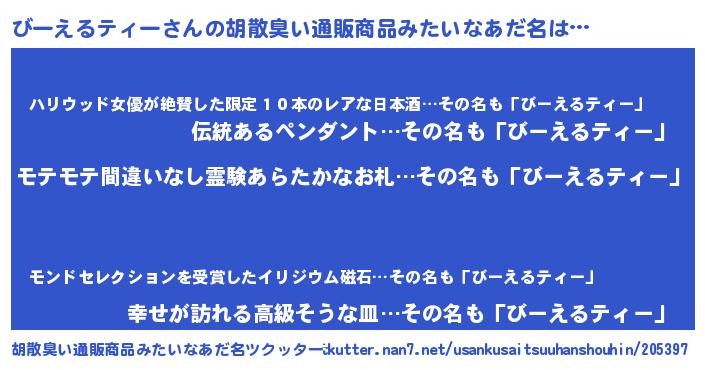 | ヒーロー風カッコイイあだ名 | 『スーパービーエルティー』 |