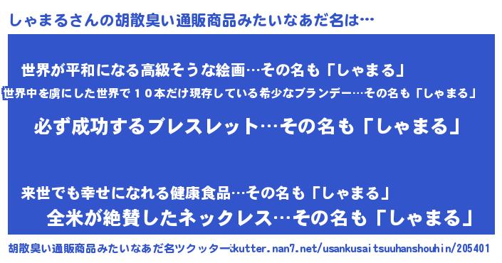 | 意味不明あだ名 | 『ペロリンしゃまる』『永久保存しゃまる』 |