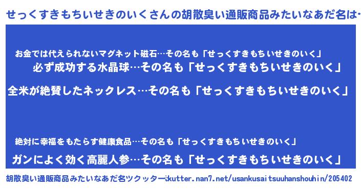 | 意味不明あだ名 | 『とにかく怪しいせっくすきもちいせきのいく』 |