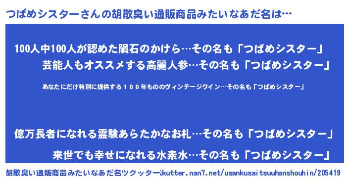 | ヘコむあだ名 | 『つばめシスター(小並感)』『つばもー』 |