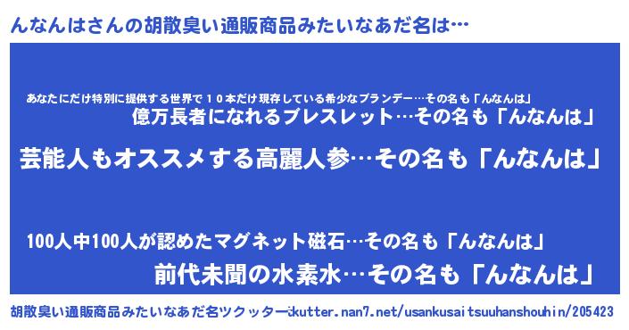 | 意味不明あだ名 | 『自称んなんは』『永久保存んなんは』 |