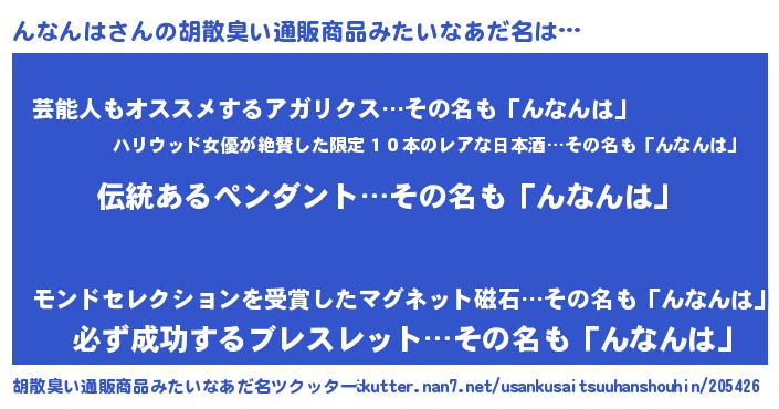 | 恥ずかしいあだ名 | 『ンナリンリン』『ンナンハデラックス』 |