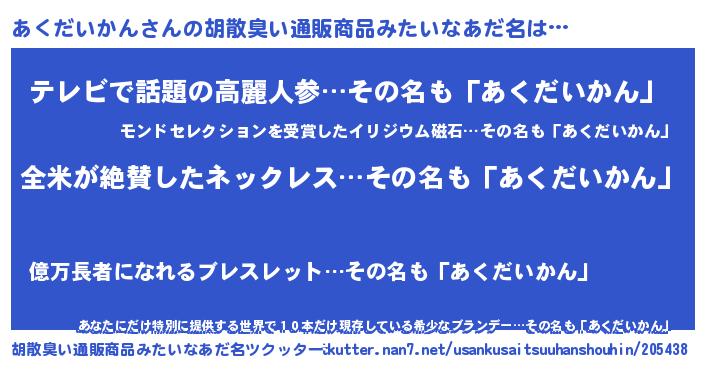 | 意味不明あだ名 | 『とにかく怪しいあくだいかん』 |
