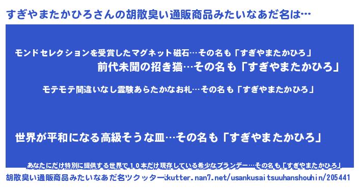 | ヘコむあだ名 | 『すぎもー』『すぎやまたかひろ(小並感)』 |