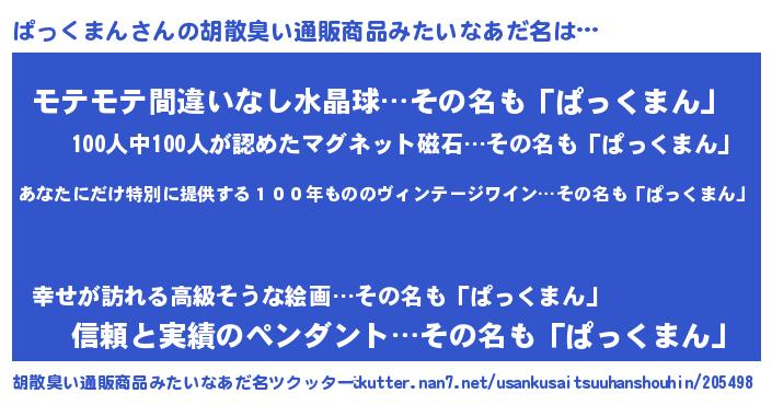 | 欧米人風あだ名 | 『ダレノガレぱっくまん』 |