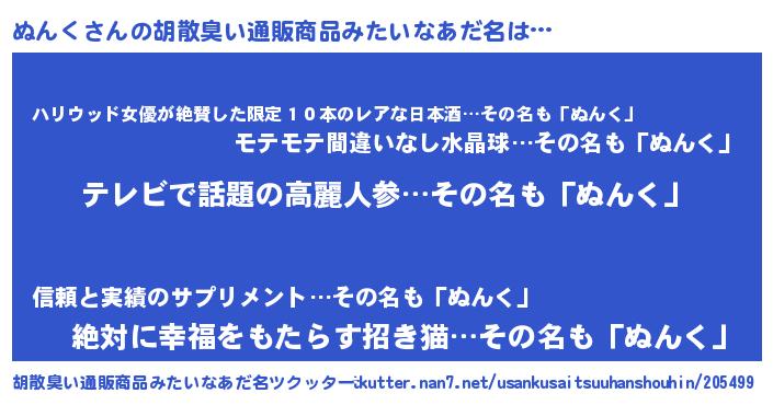 | ヘコむあだ名 | 『ぬんく(笑)』『ぬんにー』『ぬんを』 |