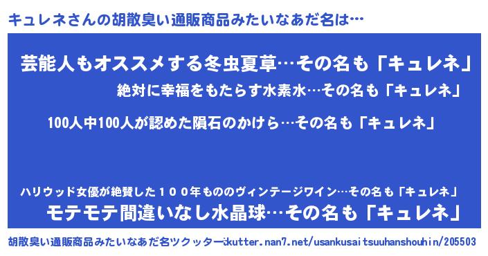 | ヘコむあだ名 | 『キュもー』『キュレネ(笑)』 |