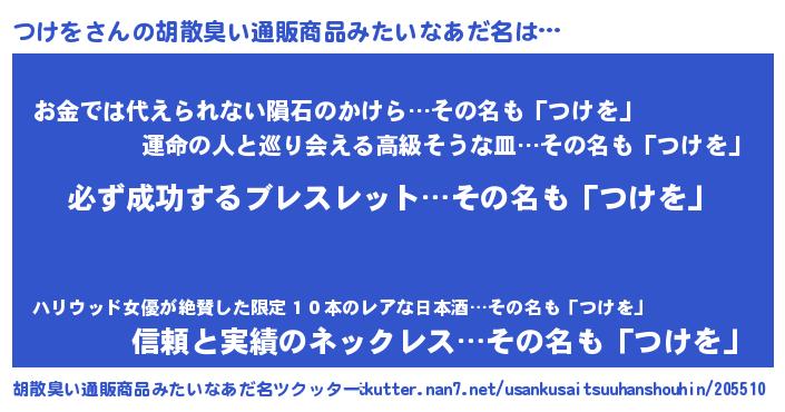| 欧米人風あだ名 | 『トリンドルつけを』『マイケルつけを』 |