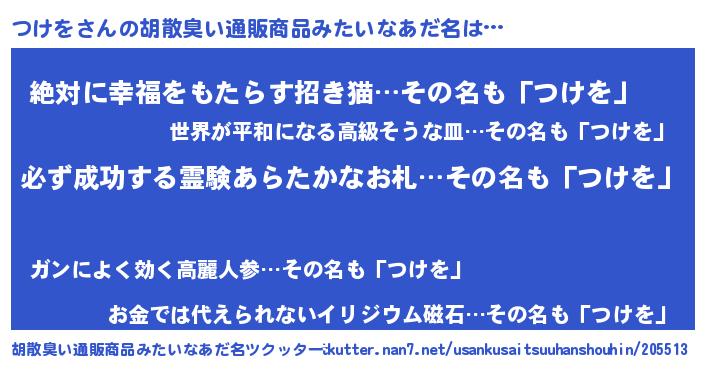 | 恥ずかしいあだ名 | 『プリティーつけを』『つけちん』 |