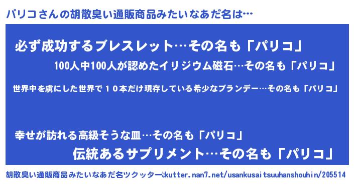| 男性向けラノベタイトル風あだ名 | 『この素晴らしい世界にパリコを!』 |
