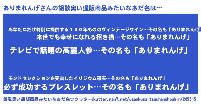 | ヘコむあだ名 | 『ありふぇ~』『ありまれんげ(小並感)』 |