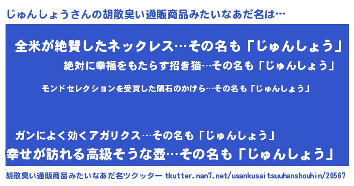 | ヒーロー風カッコイイあだ名 | 『慈愛の使者じゅんしょう』 |