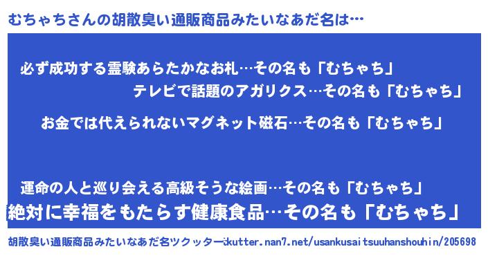 | ヘコむあだ名 | 『むちふぇ~』『むちゃち(遠い目)』 |