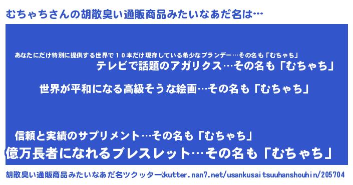| 男性向けラノベタイトル風あだ名 | 『転生したらむちゃちだった件』 |