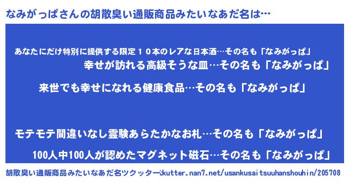 | 意味不明あだ名 | 『永久保存なみがっぱ』 |