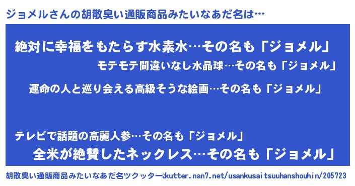 | 意味不明あだ名 | 『ジョメルフォーエバー』『自称ジョメル』 |