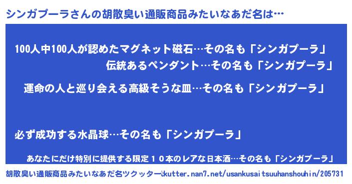 | 意味不明あだ名 | 『シンガプーラフォーエバー』 |