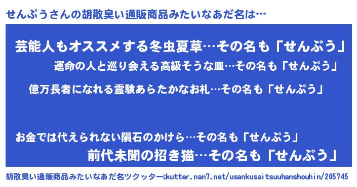 | 意味不明あだ名 | 『ペロリンせんぷう』『自称せんぷう』 |
