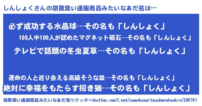| 意味不明あだ名 | 『自称しんしょく』『ペロリンしんしょく』 |