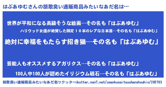 | 意味不明あだ名 | 『永久保存はぶあゆむ』 |