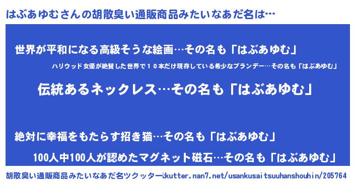 | 意味不明あだ名 | 『とにかく怪しいはぶあゆむ』 |