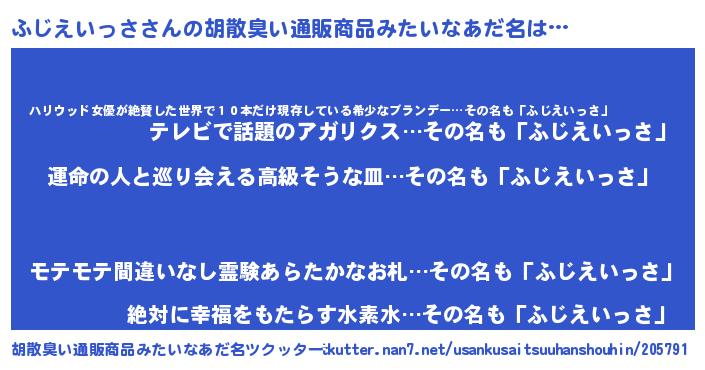 | 欧米人風あだ名 | 『ふじえいっさクリステル』 |