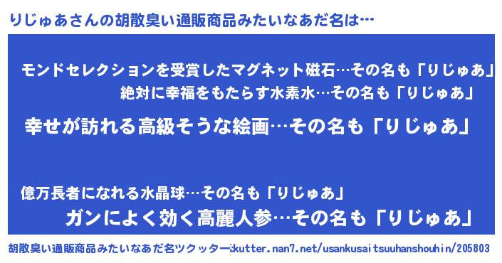 | 女子向けラノベタイトル風あだ名 | 『りじゅあの雑貨屋さん』 |