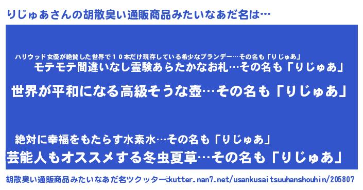 | 意味不明あだ名 | 『りじゅあフォーエバー』『自称りじゅあ』 |