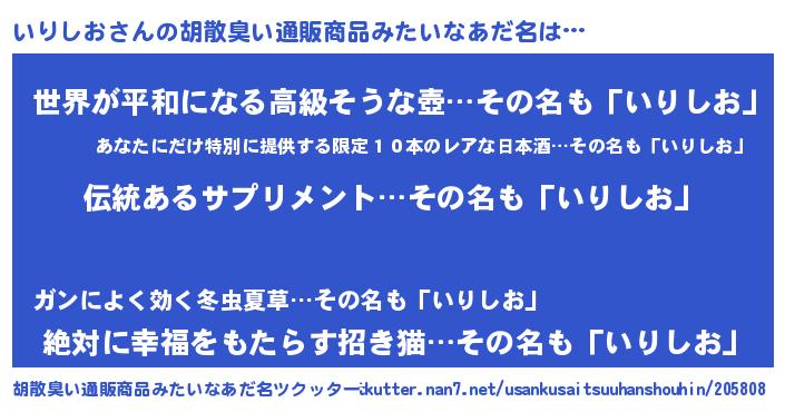 | 意味不明あだ名 | 『とにかく怪しいいりしお』 |