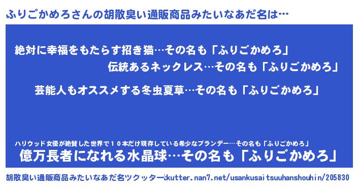 | ヘコむあだ名 | 『ふりごかめろ(震え声)』『ふりもー』 |