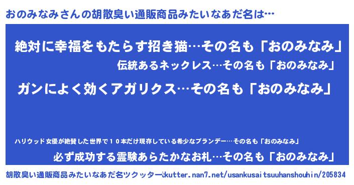 | 恥ずかしいあだ名 | 『オノミナミデラックス』『おのちん』 |