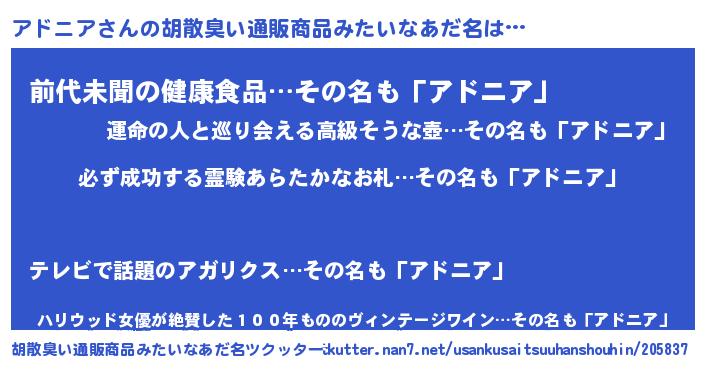 | ヘコむあだ名 | 『アドもー』『アドニア(苦笑)』 |