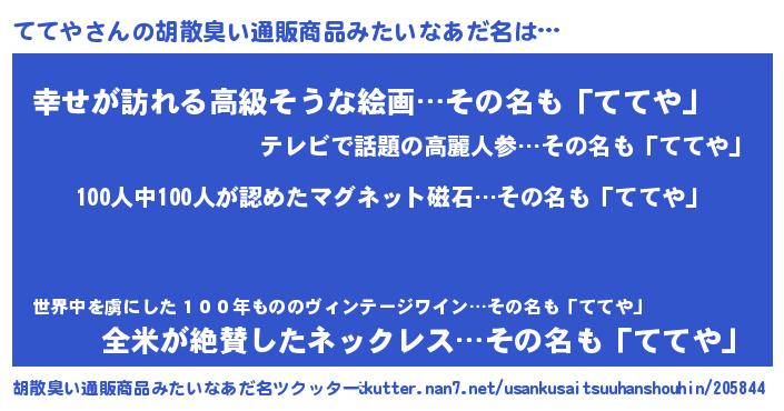 | 料理風あだ名 | 『ててやのトマト煮』『ててやごはん』 |