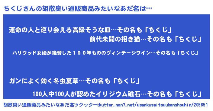 | 意味不明あだ名 | 『住所不定無職ちくじ(2歳)』 |