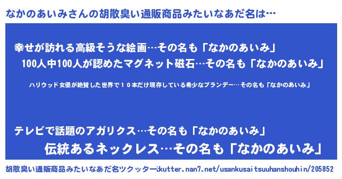 | 欧米人風あだ名 | 『ダレノガレなかのあいみ』 |