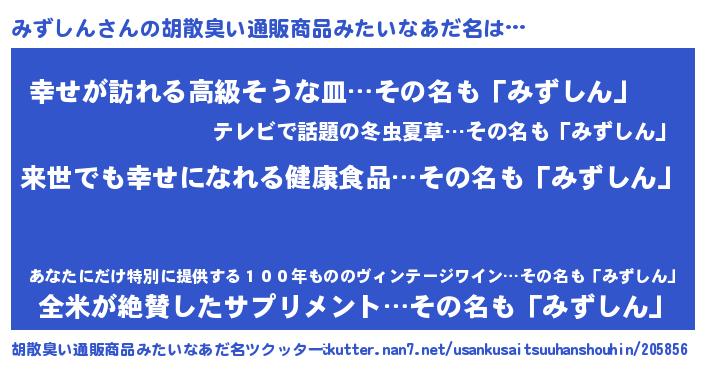 | 欧米人風あだ名 | 『アンジェラ・みずしん』 |