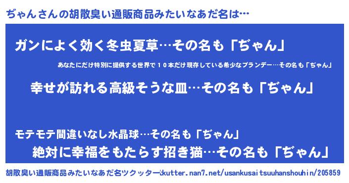 ぢゃんさんの胡散臭い通販商品みたいなあだ名をツクッター!