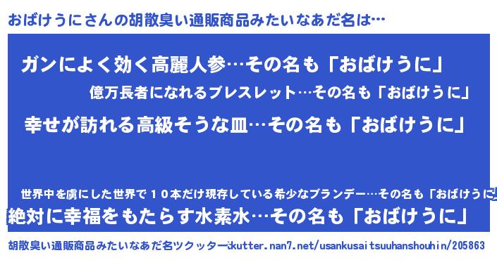 | 男性向けラノベタイトル風あだ名 | 『オバケウニスレイヤー』 |