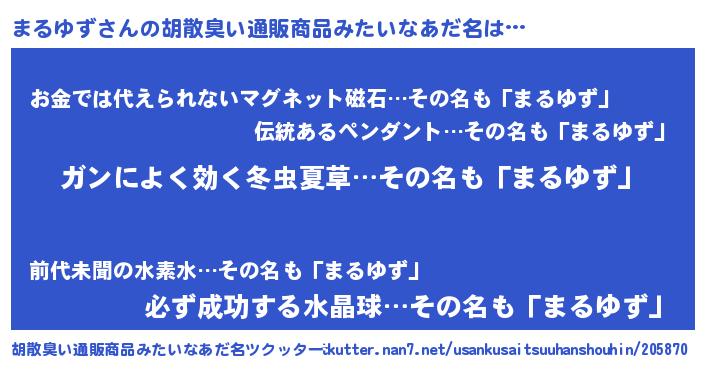 | 恥ずかしいあだ名 | 『マルユズデラックス』『マルリンリン』 |