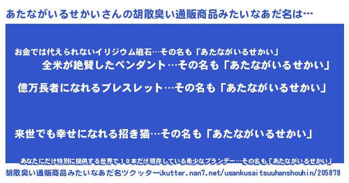 あたながいるせかいさんの胡散臭い通販商品みたいなあだ名をツクッター!