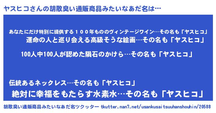 | 意味不明あだ名 | 『めかぶ科ヤスヒコ属』 |